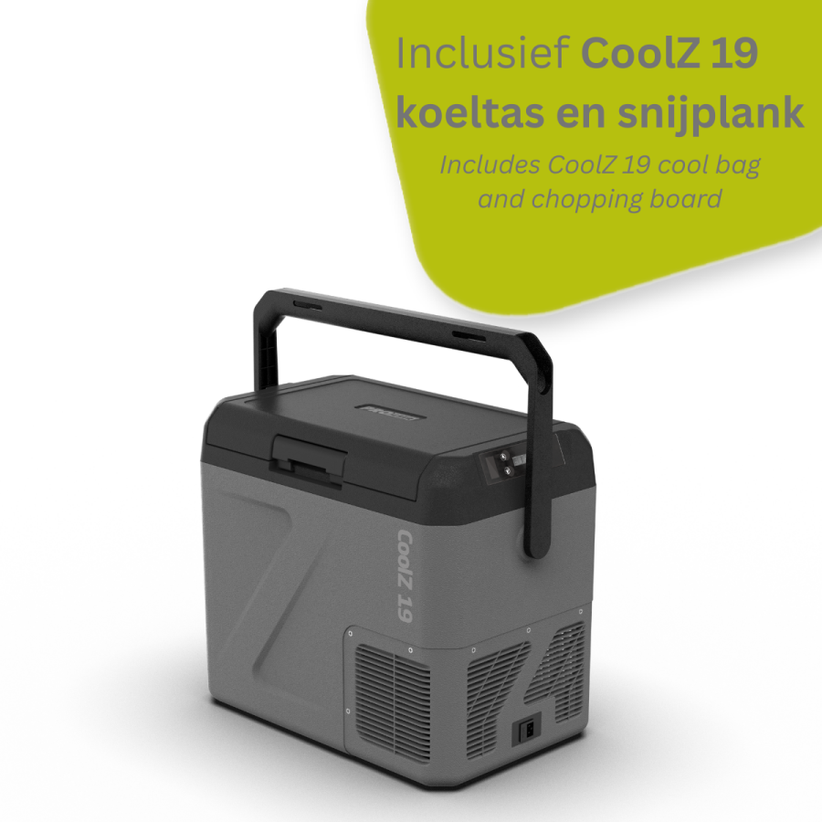 The CoolZ 19 compressor cooler is a compact, powerful and energy-efficient cooler that is perfect for use in the car, motorhome, caravan or at the campsite. Thanks to its high-quality compressor system, this cooler cools quickly and reliably, even at high outside temperatures. With a capacity of approximately 19 litres, the CoolZ 19 offers enough space for drinks, snacks and fresh food while travelling or during outdoor activities.