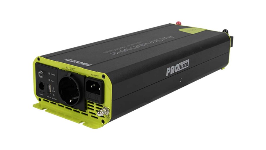 The PSI1000TX is easy to mount and easy to use through the included remote control. The inverter is equipped with an automatic switching relay. In the event of a power failure, the inverter switches over immediately and switches off again as soon as mains power is restored.
