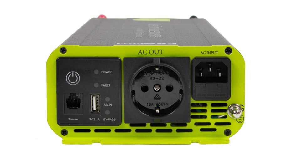 The inverter has a continuous power of 1000 Watts with a peak power of 2000 Watts.