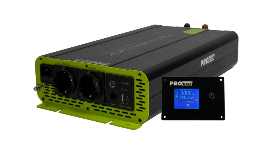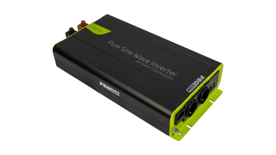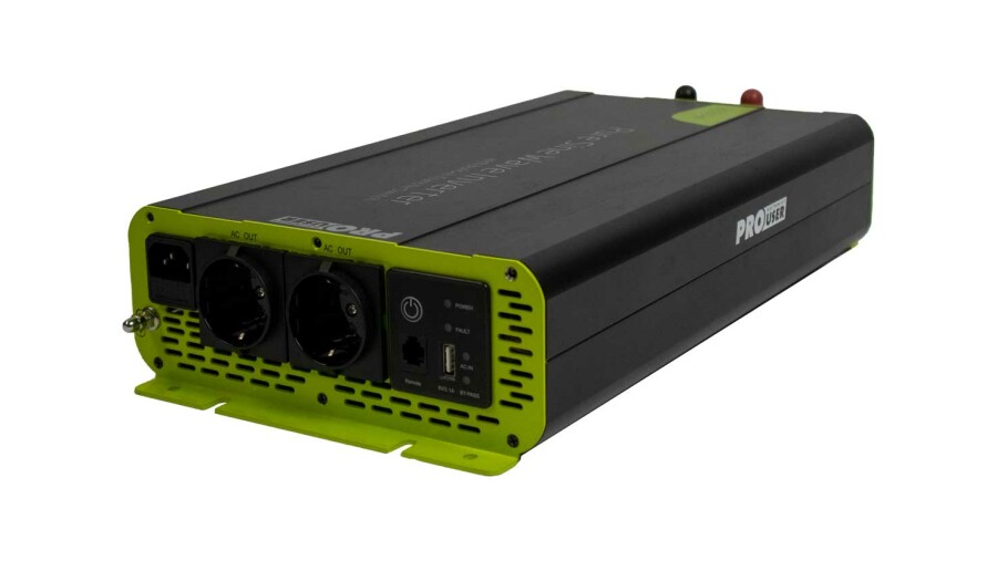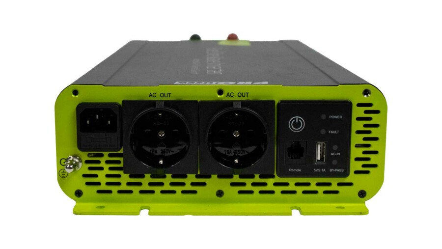 The PSI2000TX is easy to mount and easy to use with the included remote control. The inverter is equipped with an automatic switching relay. In the event of a power failure, the inverter switches over immediately and switches off again as soon as mains power is restored.
