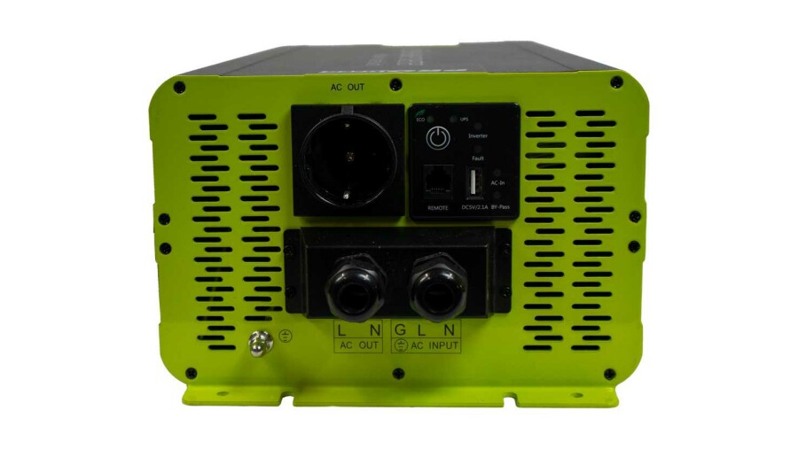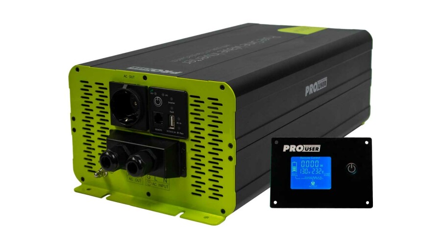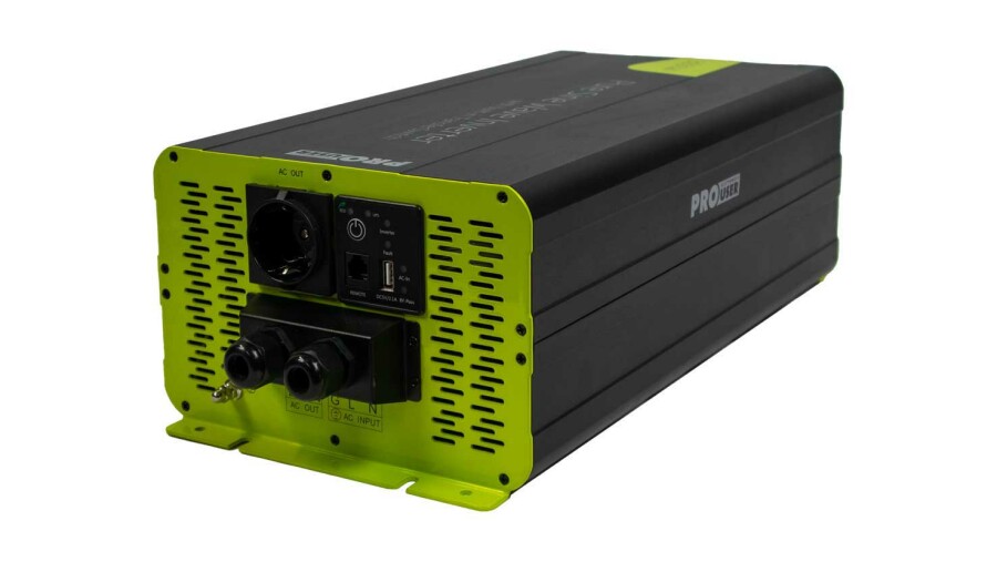 The PSI3000TX is easy to mount and easy to use by means of the included remote control. The inverter is equipped with an automatic switching relay. In the event of a power failure, the inverter switches over immediately and switches off again as soon as mains power is restored.