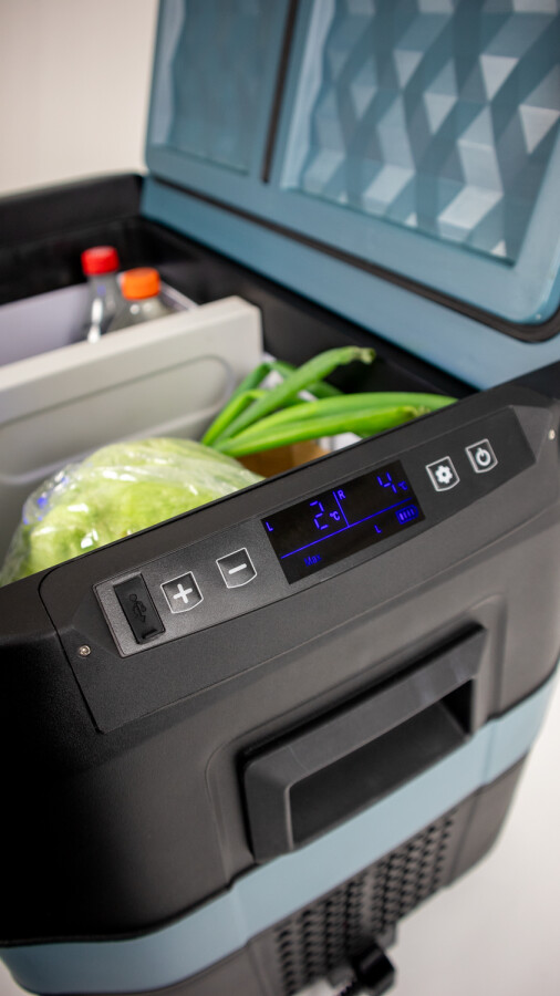 Met zijn sterke compressor kan de koelbox bij een omgevingstemperatuur van maximaal 52°C koelen tot -20°C, mits deze is aangelosten op het stroomnet.