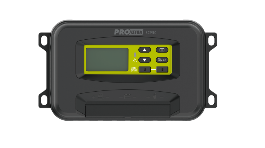 Een zonnepaneel laadstroomregelaar is nodig om een zonnepaneel veilig aan te kunnen sluiten op de accu. Deze regelaar laadt een accu zo efficiënt mogelijk op en beschermt deze tegen fluctuerende laadstromen en diepontlading. De SCP30 laadstroomregelaar 30A beschikt over PWM technologie (Pulse Width Modulation).